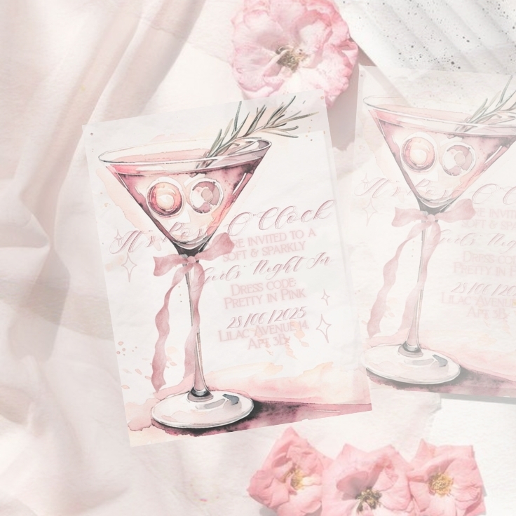 A dreamy pink-toned invitation for your next girls' night, cocktail party or brunch – fully editable & print-ready 💌
