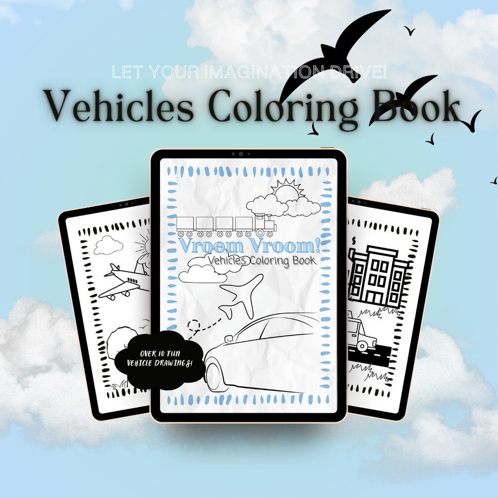The Vehicles Coloring Book for Kids is a printable set of 13 delightful pages featuring cars, airplanes, boats, trains, and more – designed to spark imagination and provide hours of entertainment.